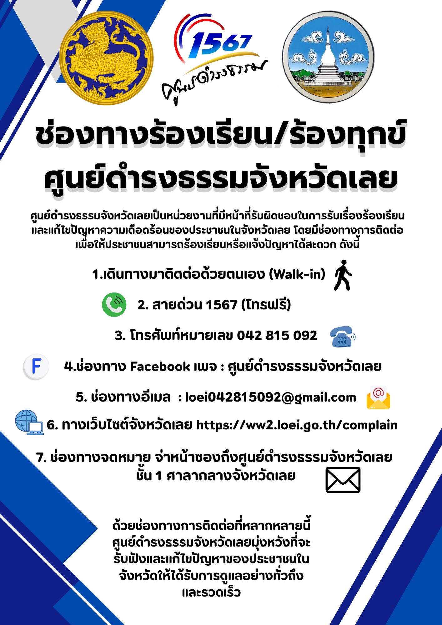ช่องทางการรับเรื่องร้องเรียน/ร้องทุกข์ศูนย์ดำรงธรรมจังหวัดเลย |