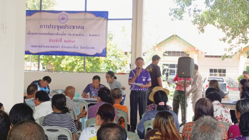 นายชาติชาย สุจิมงคล นายกเทศมนตรีตำบลนาดอกคำ พร้อมด้วยคณะผู้บริหาร สมาชิกสภาเทศบาลตำบลนาดอกคำ หัวหน้าส่วนราชการ ข้าราชการและเจ้าหน้าที่เทศบาล ได้ดำเนินการจัดประชุมประชาคมทบทวนแผนพัฒนาท้องถิ่น (พ.ศ. 2566 - 2570) ประจำปี 2568 บ้านห้วยตาด 4 หมู่บ้าน ประกอบด้วย หมู่ที่ 4 บ้านห้วยตาด หมู่ที่ 8 บ้านใหม่สันติธรรม หมู่ที่ 9 บ้านโคกหินใต้ และหมู่ที่ 17 บ้าบห้วยตาดใต้ โดยมีวัตถุประสงค์ เพื่อรวบรวมข้อมูลปัญหาความต้องการต่าง ๆ ของหมู่บ้านและชุมชน รับทราบปัญหา ความต้องการ ประเด็นการพัฒนาและประเด็นที่เกี่ยวข้องพร้อมทั้งจัดลำดับความสำคัญ เพื่อรองรับการพัฒนาและการแก้ไขปัญหาในพื้นที่ รวมทั้งตอบสนองนโยบายสำคัญเร่งด่วนที่ต้องดำเนินการแก้ไขปัญหาและพัฒนา ตลอดจนความช่วยเหลือทางวิชาการ การเปิดโอกาสให้ประชาชนทุกคน ทุกกลุ่มอาชีพ ได้มีโอกาสในการแสดงความคิดเห็น การมีส่วนร่วมในการเสนอปัญหา ความต้องการให้ตรงตามความต้องการของประชาชนอย่างแท้จริง