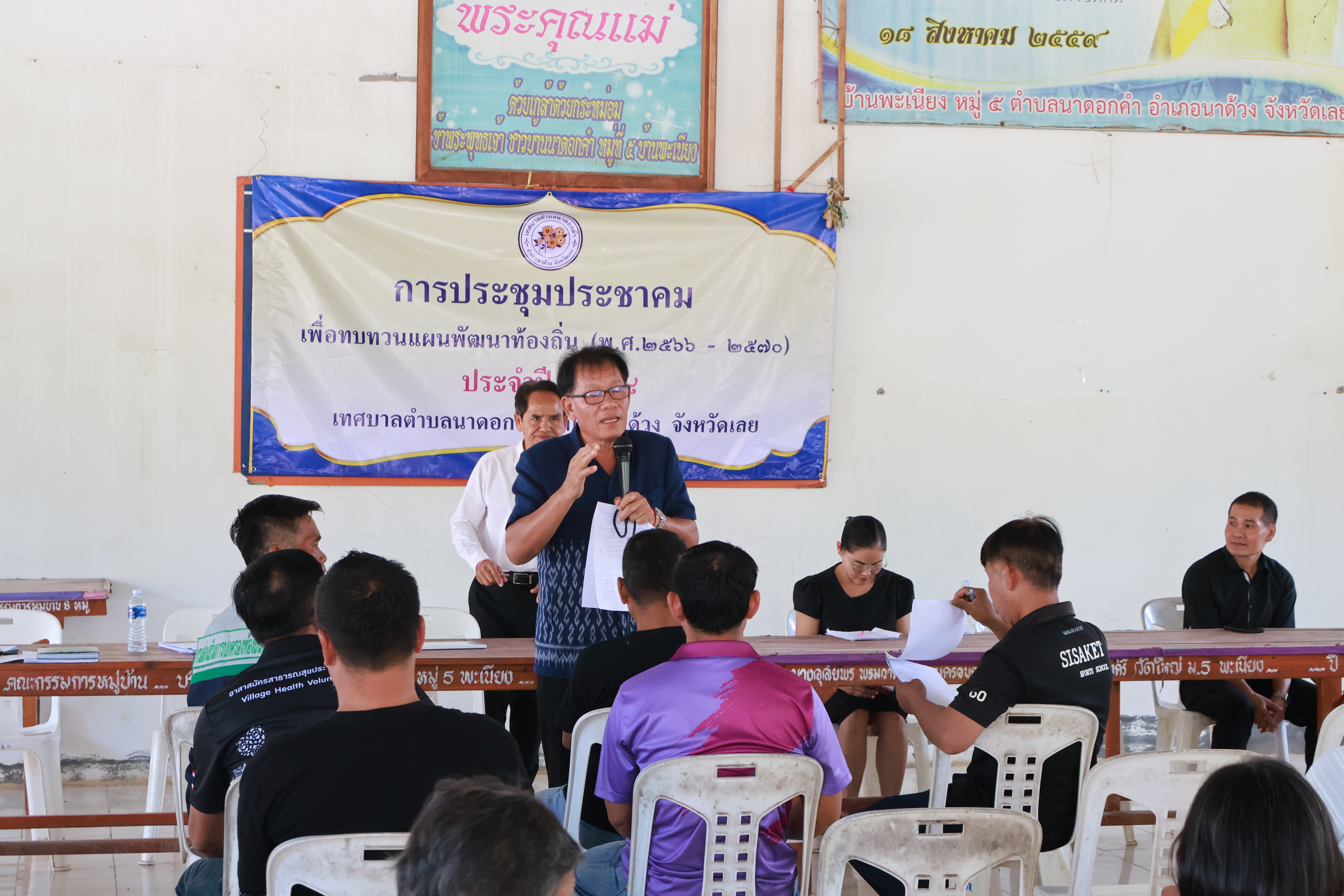 นายชาติชาย สุจิมงคล นายกเทศมนตรีตำบลนาดอกคำ พร้อมด้วยคณะผู้บริหาร สมาชิกสภาเทศบาล หัวหน้าส่วนราชการ ข้าราชการและเจ้าหน้าที่เทศบาลตำบลนาดอกคำ ลงพื้นที่ประชาคมทบทวนแผนพัฒนาท้องถิ่น (พ.ศ. 2566 - 2570) ประจำปี 2568 เขตพื้นที่บ้านนาดอกคำทั้ง 8 หมู่บ้าน ได้แก่ หมู่ 1 บ้านห้วยเตย, หมู่ 2 บ้านนาดอกคำ, หมู่ 5 บ้านพะเนียง, หมู่ 11 บ้านอนามัย, หมู่ 13 บ้านศรีสะอาด, หมู่ 14 บ้านโนนตะวัน, หมู่ 15 บ้านโนนเขาแก้ว, และหมู่ 16 บ้านหนองเป็ดก่า ตำบลนาดอกคำ อำเภอนาด้วง จังหวัดเลย เพื่อรวบรวมข้อมูลปัญหาความต้องการต่าง ๆ ของหมู่บ้านและชุมชน รับทราบปัญหาความต้องการประเด็นการพัฒนาและประเด็นที่เกี่ยวข้อง พร้อมทั้งจัดลำดับความสำคัญ เพื่อรองรับการพัฒนาและการแก้ไขปัญหาในพื้นที่ รวมทั้งตอบสนองนโยบายสำคัญเร่งด่วนที่ต้องดำเนินการแก้ไขปัญหาและพัฒนา ตลอดจนความช่วยเหลือทางวิชาการ การเปิดโอกาสให้ประชาชนทุกคน ทุกกลุ่มอาชีพได้มีโอกาสในการแสดงความคิดเห็นการมีส่วนร่วมในการเสนอปัญหาความต้องการให้ตรงตามความต้องการของประชาชนอย่างแท้จริง