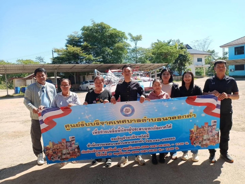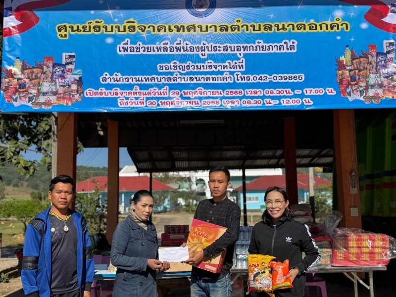 มอบหมายนางอรทัย ทักษิณ เลขานุการนายกเทศมนตรีตำบลนาดอกคำ พร้อมด้วยนายอภิชาติ สุจิมงคล นักป้องกันและบรรเทาสาธารณภัย และพนักงานเทศบาลตำบลนาดอกคำ นำสิ่งของบริจาคที่ได้รับจากพี่น้องชาวตำบลนาดอกคำ ส่งมอบให้แก่สำนักงานป้องกันและบรรเทาสาธารณภัยจังหวัดเลย (ปภ.จังหวัดเลย) เพื่อดำเนินการส่งต่อไปยังพี่น้องผู้ประสบอุทกภัยในพื้นที่ภาคใต้ การส่งมอบครั้งนี้เป็นการร่วมแรงร่วมใจของประชาชนในชุมชน ที่ต้องการช่วยเหลือผู้ประสบภัยให้ได้รับกำลังใจและสิ่งของจำเป็นอย่างเร่งด่วน ทั้งนี้ เทศบาลตำบลนาดอกคำขอขอบคุณทุกน้ำใจที่ร่วมบริจาค และจะดำเนินการประสานงานเพื่อช่วยเหลือผู้ประสบภัยอย่างเต็มที่ต่อไป ณ ศาลากลางจังหวัดเลย