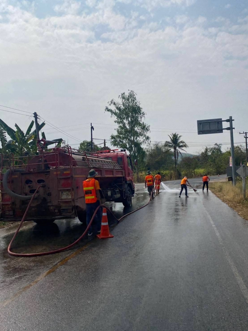 นายชาติชาย สุจิมงคล นายกเทศมนตรีตำบลนาดอกคำ มอบหมาย นายอภิชาติ สุจิมงคลนักป้องกันและบรรเทาสาธารณภัยปฎิบัติการ พร้อมด้วยเจ้าหน้าที่ป้องกันและบรรเทาสาธารณภัย (ปภ.) เทศบาลตําบลนาดอกคำ ลงพื้นที่ทำความสะอาดถนนบริเวณจุดเสี่ยงพื้นที่หมู่ 10 เพื่อลดอุบัติเหตุทางถนนจากน้ำยางพาราและฝุ่นละออง พร้อมทั้งเตรียมพร้อมรับมือพายุฤดูร้อนในระหว่างวันที่ 23-25 กุมภาพันธ์ 2569 ณ พื้นที่ หมู่ 10 ตำบลนาดอกคำ อำเภอนาด้วง จังหวัดเลย