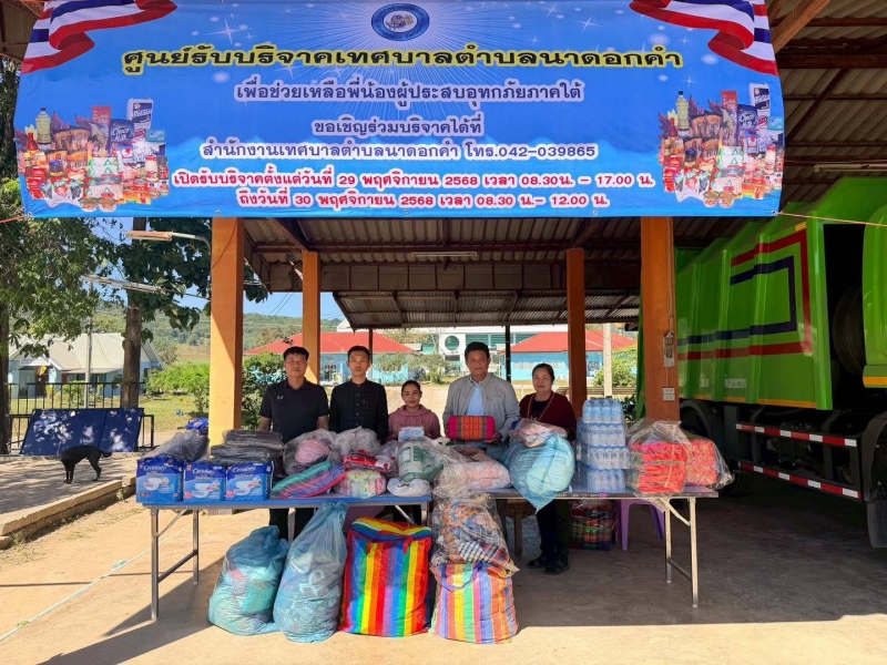 มอบหมายนางอรทัย ทักษิณ เลขานุการนายกเทศมนตรีตำบลนาดอกคำ พร้อมด้วยนายอภิชาติ สุจิมงคล นักป้องกันและบรรเทาสาธารณภัย และพนักงานเทศบาลตำบลนาดอกคำ นำสิ่งของบริจาคที่ได้รับจากพี่น้องชาวตำบลนาดอกคำ ส่งมอบให้แก่สำนักงานป้องกันและบรรเทาสาธารณภัยจังหวัดเลย (ปภ.จังหวัดเลย) เพื่อดำเนินการส่งต่อไปยังพี่น้องผู้ประสบอุทกภัยในพื้นที่ภาคใต้ การส่งมอบครั้งนี้เป็นการร่วมแรงร่วมใจของประชาชนในชุมชน ที่ต้องการช่วยเหลือผู้ประสบภัยให้ได้รับกำลังใจและสิ่งของจำเป็นอย่างเร่งด่วน ทั้งนี้ เทศบาลตำบลนาดอกคำขอขอบคุณทุกน้ำใจที่ร่วมบริจาค และจะดำเนินการประสานงานเพื่อช่วยเหลือผู้ประสบภัยอย่างเต็มที่ต่อไป ณ ศาลากลางจังหวัดเลย