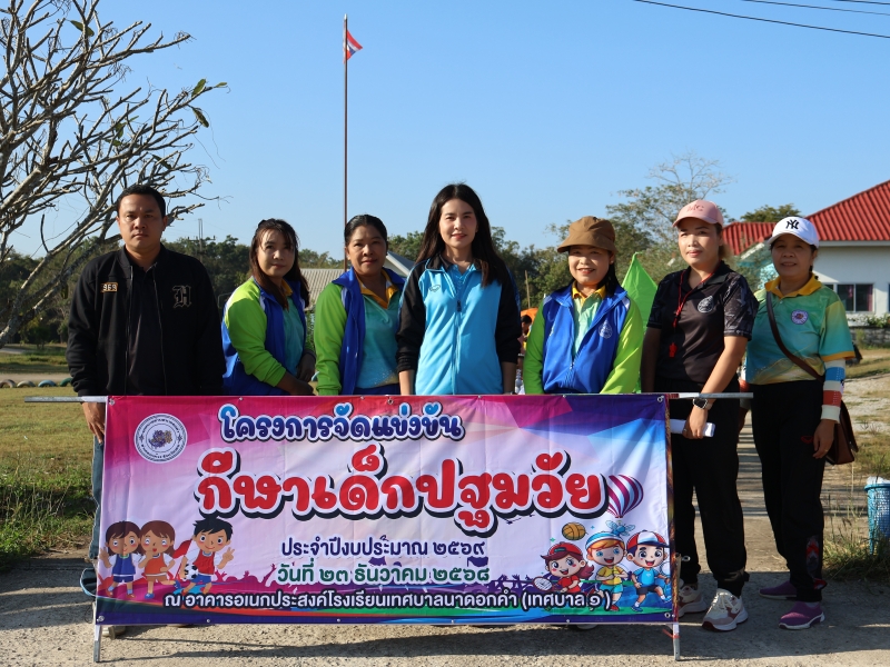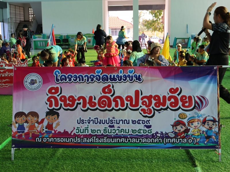 นายชาติชาย สุจิมงคลนายกเทศมนตรีตำบลนาดอกคำ มอบหมายนายบุญชู ตาดีรองนายกเทศมนตรีตำบลนาดอกคำ พร้อมด้วยคณะผู้บริหาร ร่วมเป็นประธานเปิดการแข่งขันกีฬาปฐมวัยประจำปีงบประมาณ 2569 ศูนย์พัฒนาเด็กเล็กทั้ง 5 แห่งของเทศบาลตำบลนาดอกคำ โดยนางสาวสายทอง คำเรืองศรี ผู้อำนวยการกองการศึกษาโรงเรียนเทศบาลนาดอกคำ (เทศบาล1) เป็นผู้กล่าวรายงานวัตถุประสงค์ของการจัดการแข่งขันกีฬาปฐมวัยของศูนย์พัฒนาเด็กเล็ก เพื่อเป็นการส่งเสริมให้เด็กมีระเบียบวินัย ปลูกฝังค่านิยมในการเล่นกีฬา รู้แพ้ รู้ชนะ และรู้การให้อภัย ในโอกาสนี้ ขอขอบคุณ ประธานสภา รองประธานสภา สมาชิกสภาเทศบาลตำบลนาดอกคำ หัวหน้าสำนักปลัด ข้าราชการ คณะครู เจ้าหน้าที่ พนักงานเทศบาลตำบลนาดอกคำ ผู้นำชุมชน องค์กรส่วนท้องถิ่นเทศบาลตำบลนาดอกคำที่ร่วมเป็นเกียรติในการจัดการแข่งขันกีฬาปฐมวัย ประจำปีงบประมาณ 2569 ณ อาคารอเนกประสงค์โรงเรียนเทศบาลนาดอกคำ(เทศบาล1) ในครั้งนี้