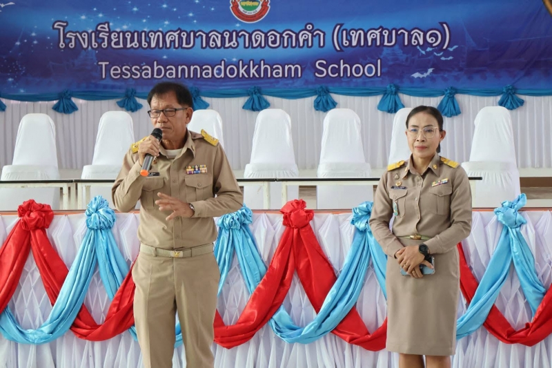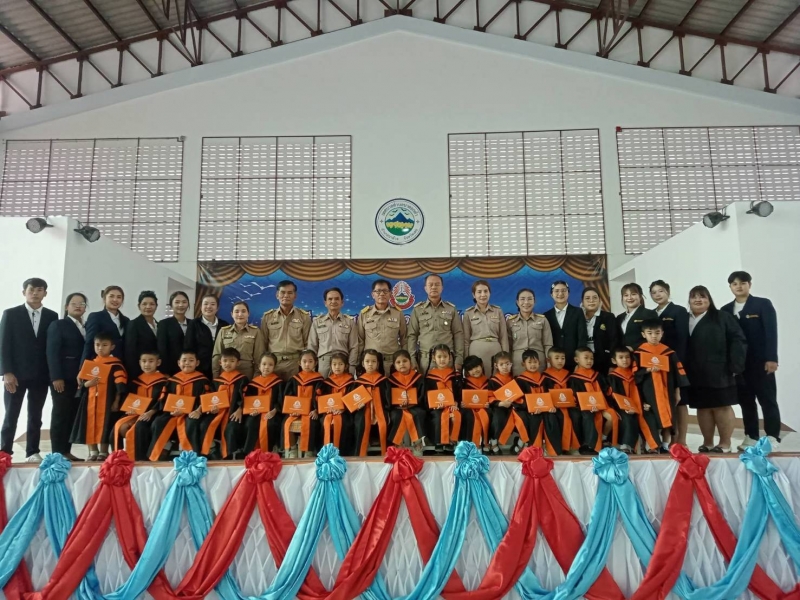 นางอรทัย ทักษิณ เลขานุการนายกเทศมนตรีตำบลนาดอกคำ สิบตำรวจโทไพฑูรย์ ภูคงคา ปลัดเทศบาล นางสาวสายทอง คำเรืองศรี ผู้อำนวยการกองการศึกษา นางสาวเปรมย์ปรีดา ยศรุ่งเรือง ผู้อำนวยการสถานศึกษา คณะครูและบุคลากรทางการศึกษา โรงเรียนเทศบาลนาดอกคำ (เทศบาล๑) ให้เกียรติร่วมถ่ายภาพกับนักเรียนระดับชั้นประถมศึกษาปีที่ 6 กับนักเรียนระดับชั้นอนุบาล 3 ที่จะจบการศึกษาในปีการศึกษา 2568 นี้ ณ หอประชุมโรงเรียนเทศบาลนาดอกคำ(เทศบาล ๑)ตำบลนาดอกคำ อำเภอนาด้วง จังหวัดเลย