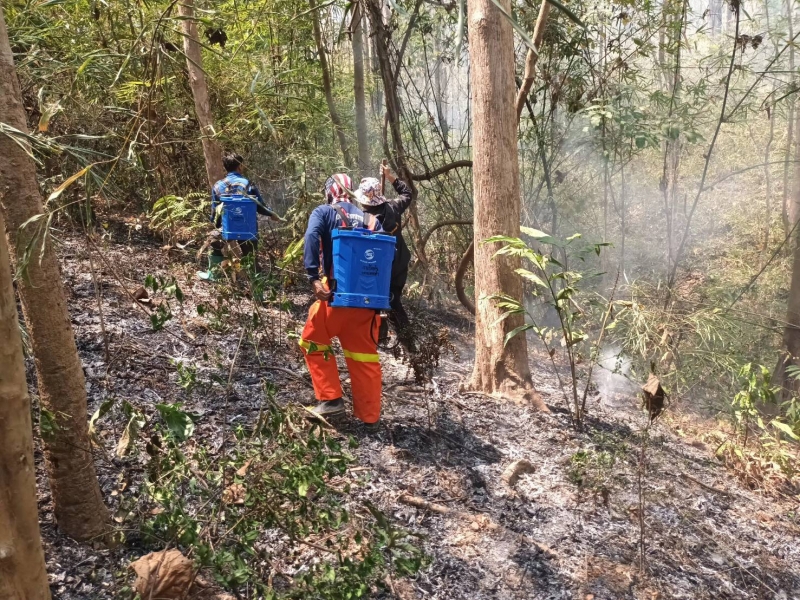 โดยมีผู้นำชุมชนหมู่ที่ 7 และหมู่ที่ 12 ร่วมด้วยเจ้าหน้าที่จากสวนป่าห้วยปลาดุก เข้าร่วมปฏิบัติการดับเพลิงในครั้งนี้ ณ บริเวณหนองปลานิล หมู่ที่ 7 บ้านร่มเย็น ตำบลนาดอกคำ อำเภอนาด้วง