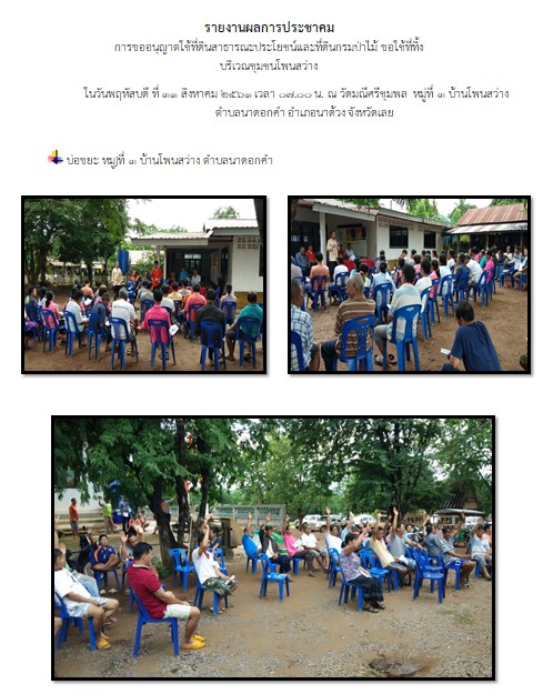 รายงานผลการประชาคมขออนุญาตใช้ที่ดินสาธารณะทิ้งขยะ |